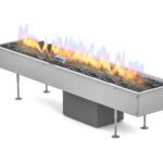 Kominek Sono wyposażono w specjalnie zaprojektowany palnik BEV® z realistycznym układem ceramicznych polan. Ułożone są one warstwowo i pod różnymi kątami, co tworzy efekt ognia płonącego w głębi, a nie tylko w linii prostej. Płomień ma nieregularną strukturę, zmienną wysokość i naturalny rytm – dzięki czemu bardziej przypomina tradycyjne palenisko niż typowy kominek liniowy. Takie rozwiązanie wzmacnia wizualny efekt we wnętrzu, szczególnie w aranżacjach, gdzie ogień pełni rolę centralnego punktu.